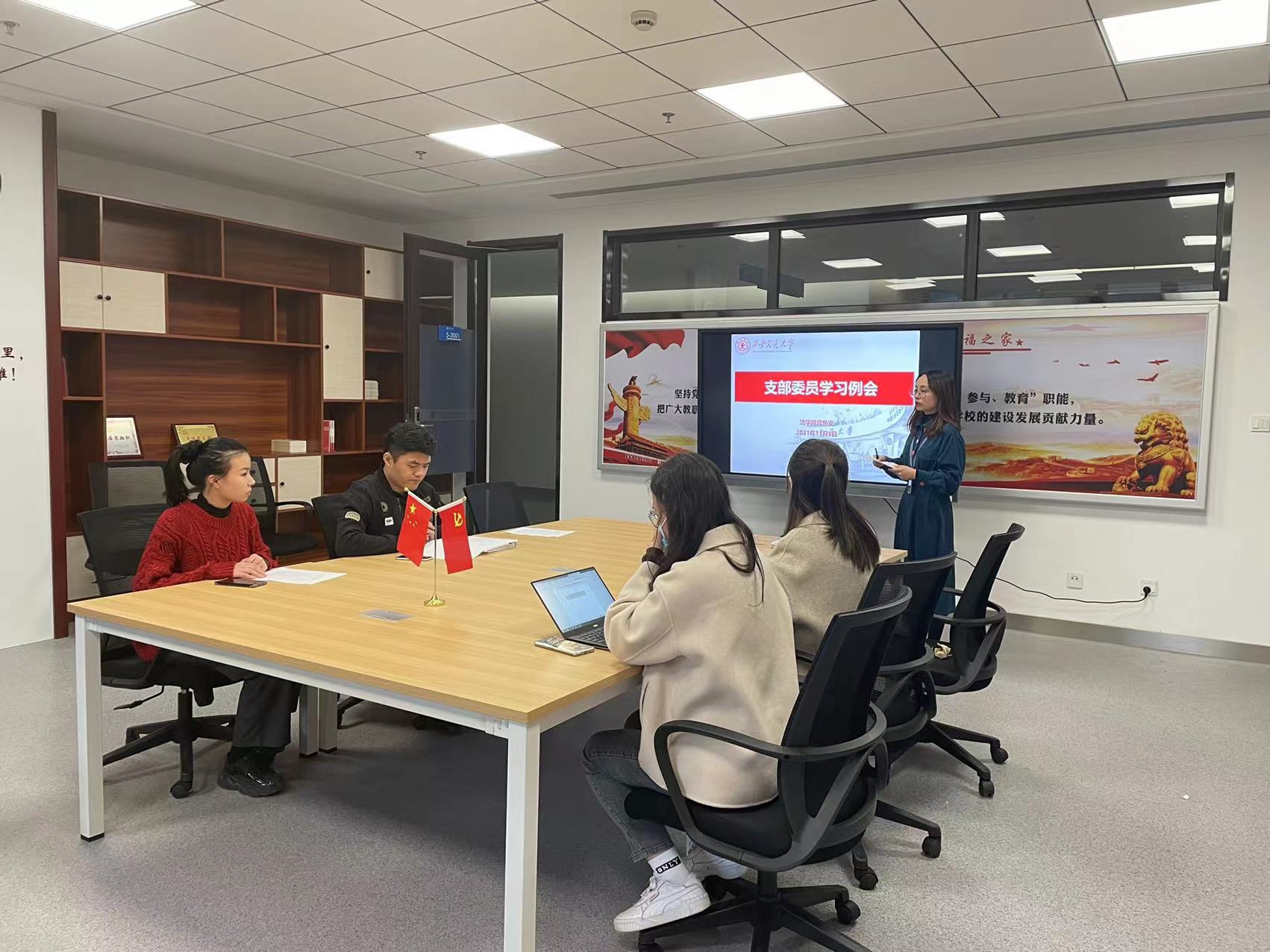 2021年11月5日下午,uwin电竞官网党总支在创新港涵英楼党员活动室召开支部委员学习例会,组织研一各支部委员学习支部工作相关制度要求,交流研讨研究生党建工作。学习例会由uwin电竞官网党总支秘书李晶老师主持。