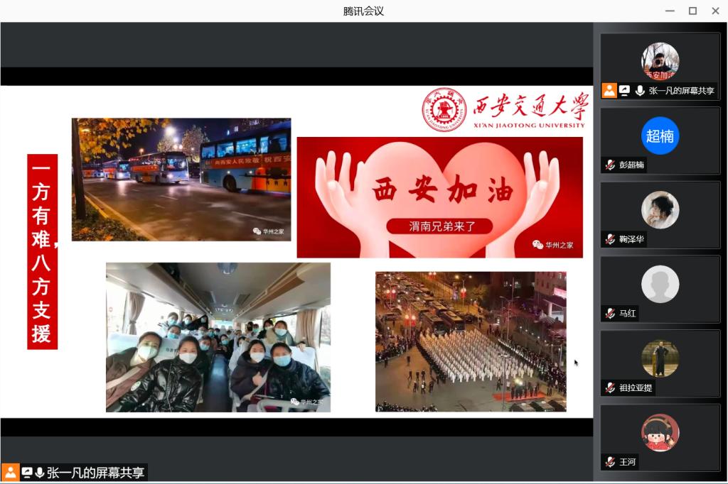 硕1173支部全体成员纷纷表示,将继续团结协作,遵守校园防疫规定,为抗击疫情贡献力量。相信在默默奋斗的无数前线抗疫人员以及大家的共同努力下,西安终将战胜疫情,打赢这场疫情防控阻击战。会议在大家的新年祝福中进入尾声。