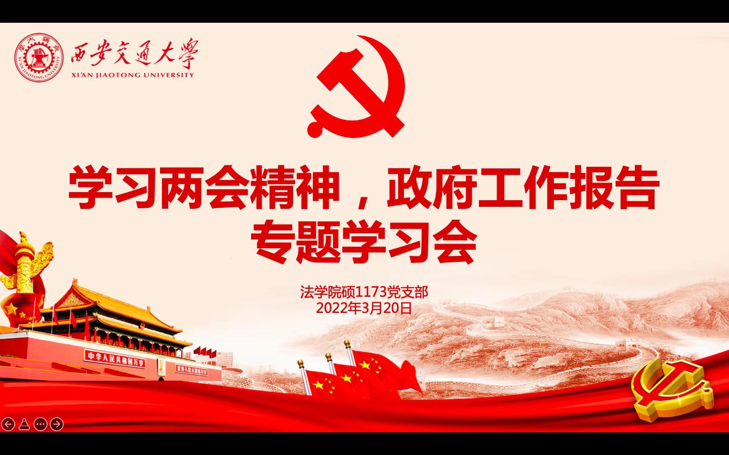 2022年3月20日uwin电竞官网硕1173班举办了主题为学习“两会“精神,坚定发展信心的专题学习会议,由于疫情的影响,本次专题学习会议仍然采用线上的方式进行。本次会议由党支部书记张一凡主持,党员及入党积极分子总共32人参与会议。