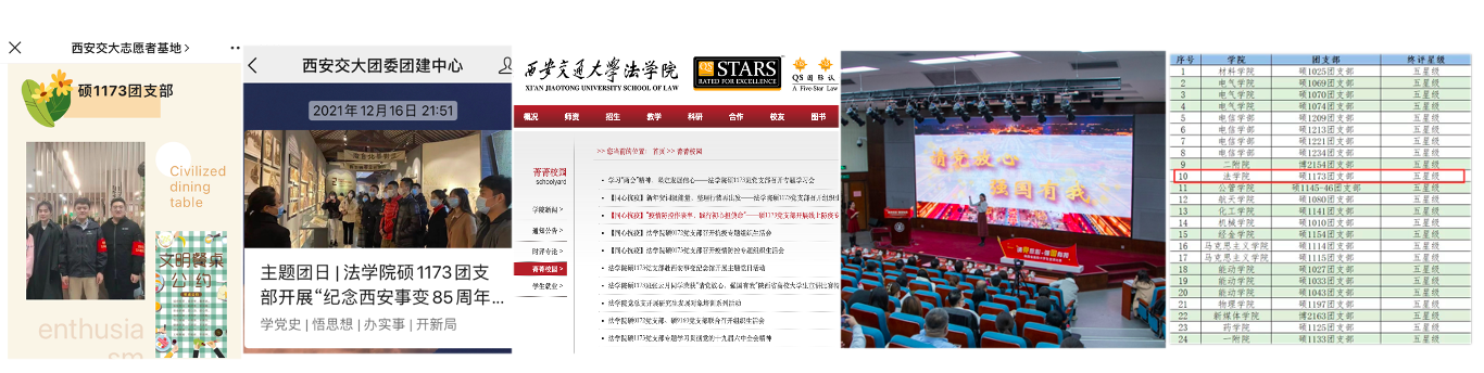 2022年4月10日,共青团uwin电竞官网委员会开展了2021级新生研究生团支部星级评定工作,我院硕1173团支部被评为校级五星级团支部,团支书张一凡获得校级魅力团支书提名奖。