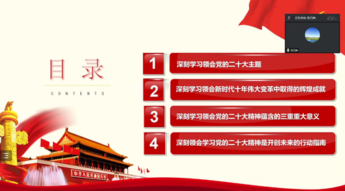 12月9日,uwin电竞官网硕2185党支部和硕2186党支部召开了“贯彻落实二十大精神,做新时代青年人”专题宣讲学习会,邀请学院学生工作专职委员张乃钟老师进行了主题宣讲。本次会议采取线上的方式进行,硕2186党支部书记付思鑫主持会议,硕2185党支部、硕2186党支部全体党员参加了会议。